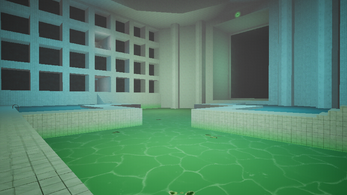 - Level 1: Classic Poolrooms - A linear, by-the-books Poolrooms experience. White tiles, soft marble, and fake skylights form the comforting yet uncanny liminal space you’d expect from a classic Poolrooms environment. This is a straightforward level that is designed to introduce players to the retro-styled atmosphere of this crazy world.
